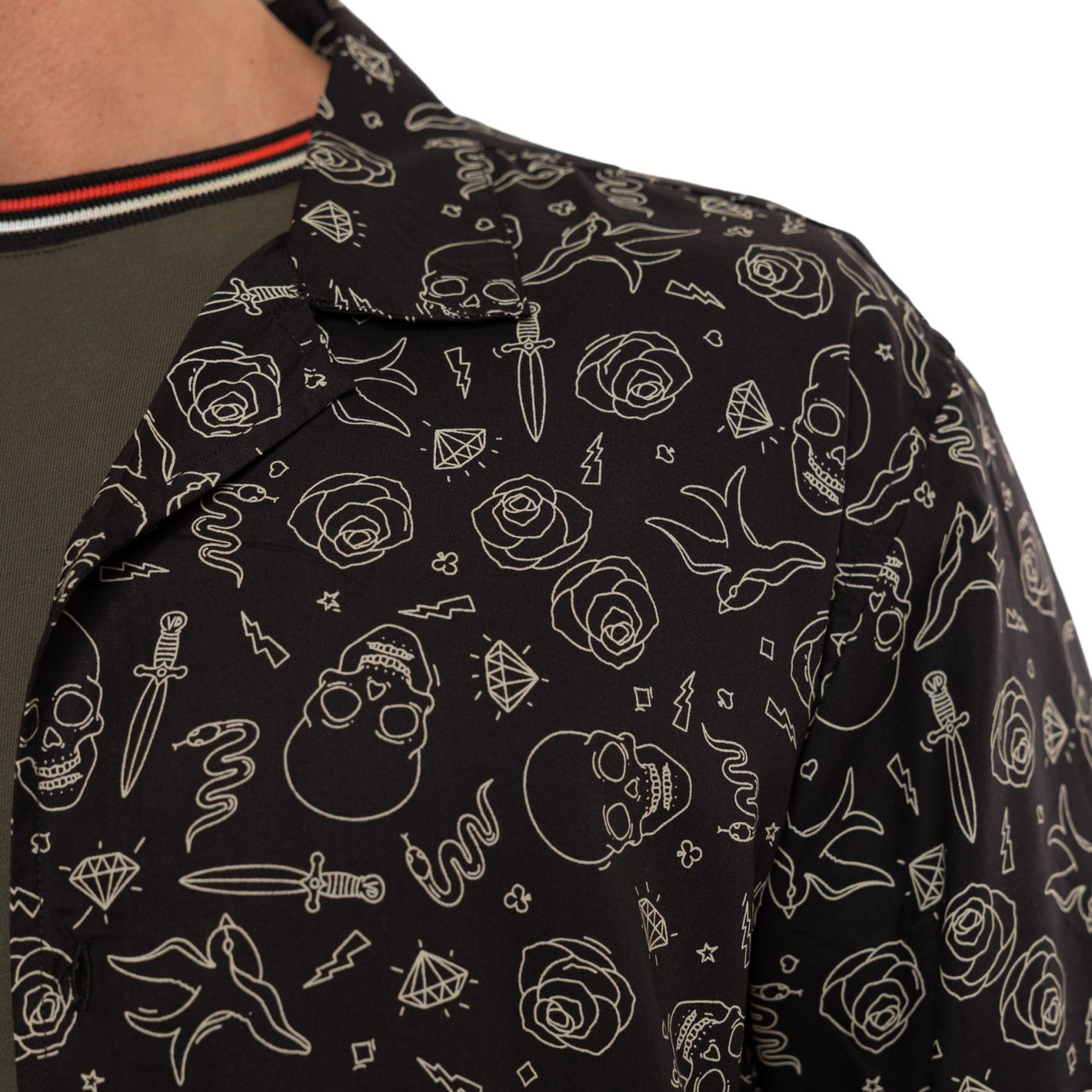 Chemise homme fluide manches courtes en viscose imprimée Tats