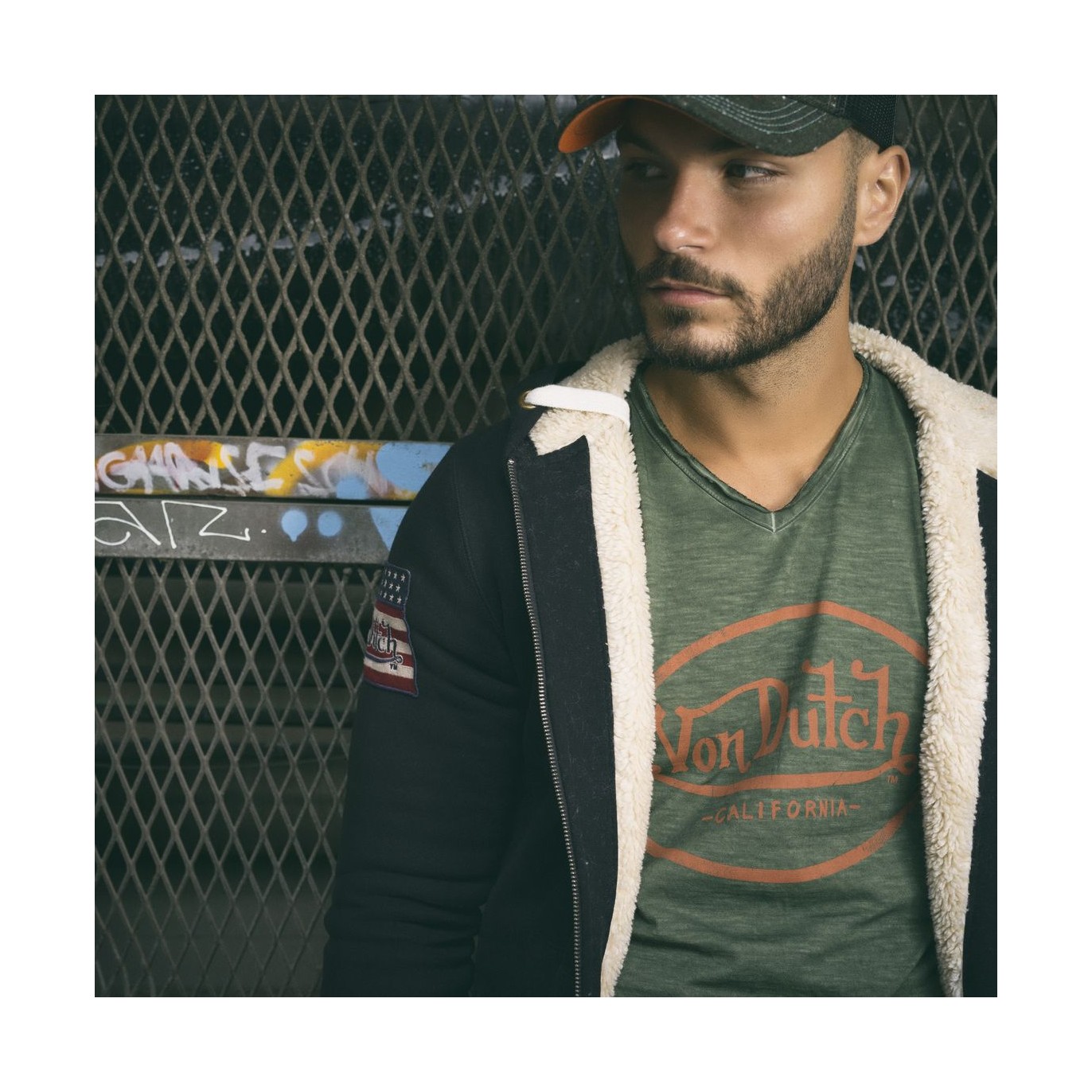 - Von Dutch print logo on the front, worn effect