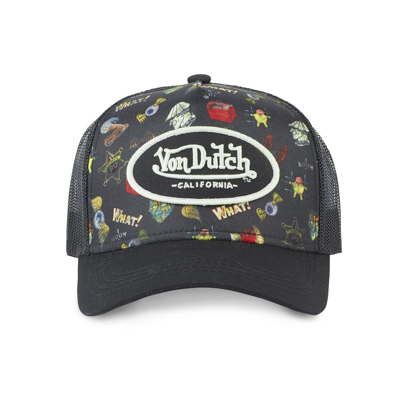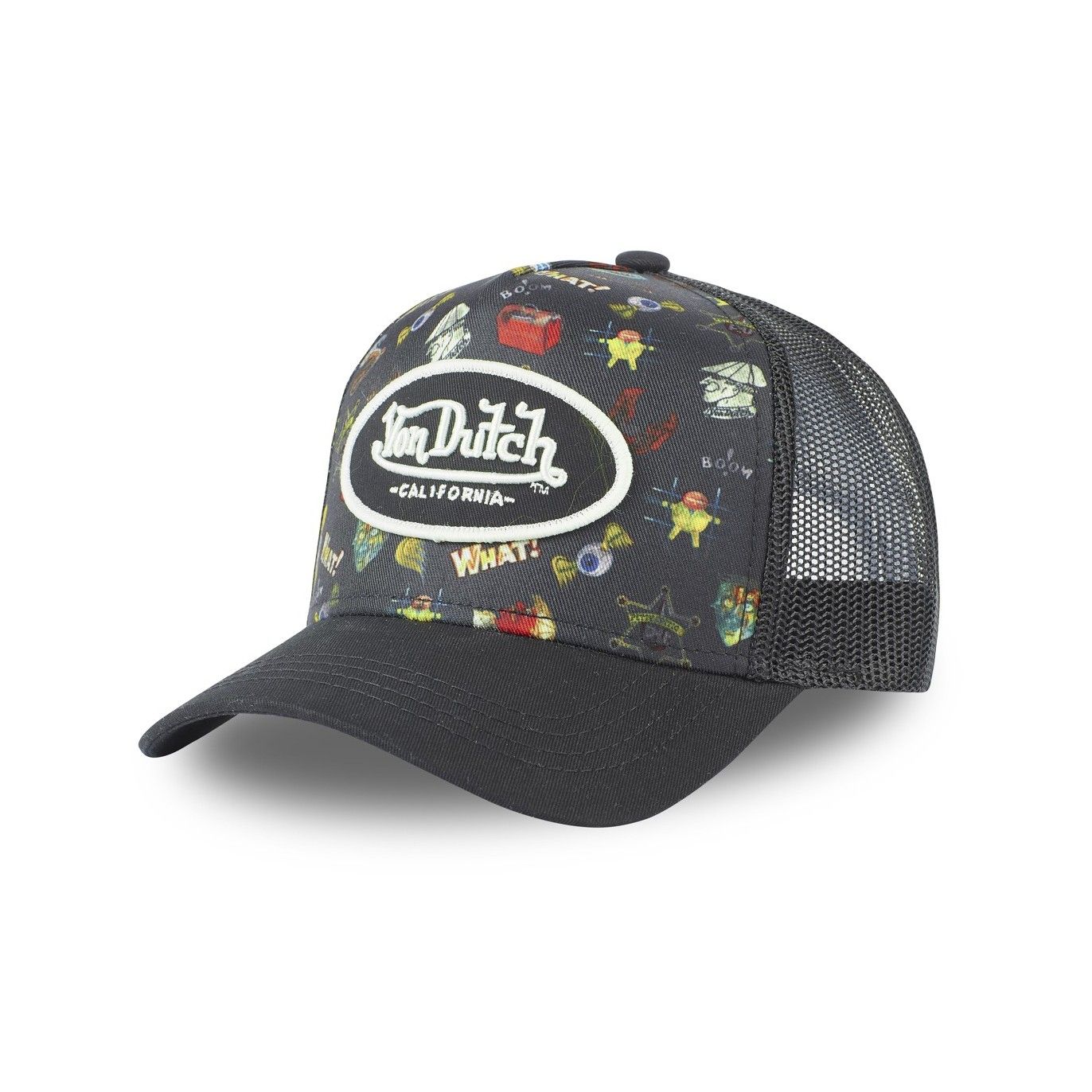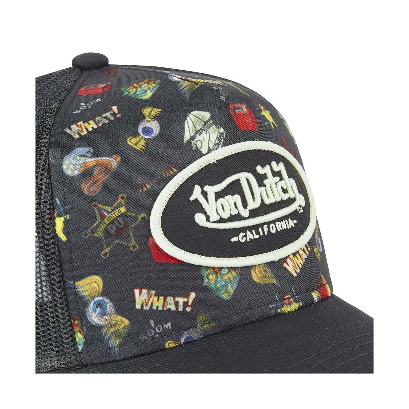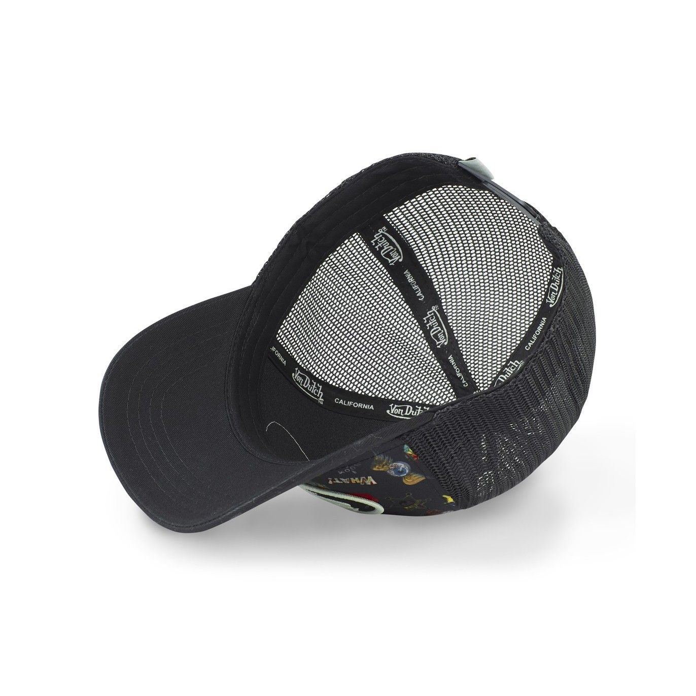 Une casquette Von Dutch originale et unique ! Découvrez ce modèle Tatoo Von Dutch et retrouvez diverses illustrations sur le devant de votre casquette ! Une visière arrondie type baseball pour un style incomparable et un filet à l'arrière pour plus de confort. Vous disposez d'un patch Von Dutch à l'avant pour un style anti-conformiste au quotidien. Le coloris noir et le détail des tatoo de la casquette rend ce produit unique en son genre.