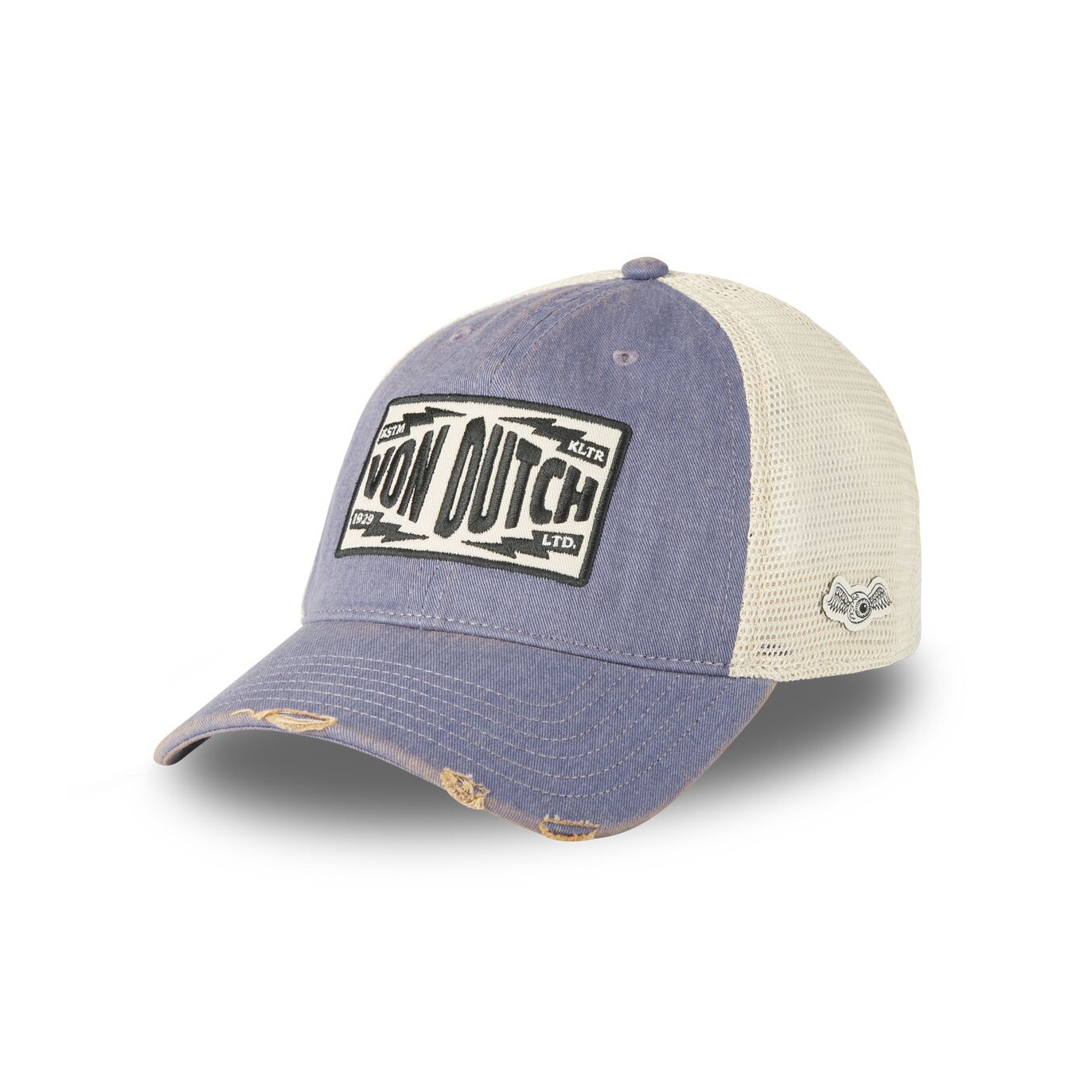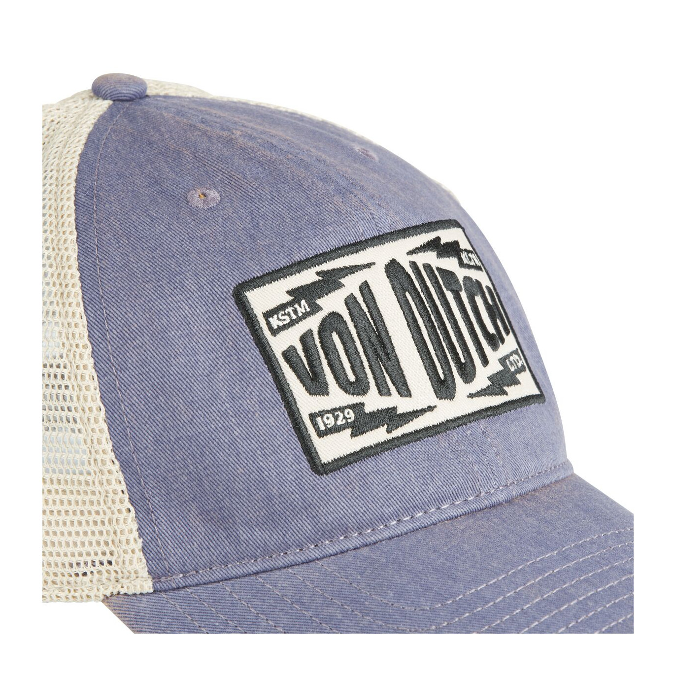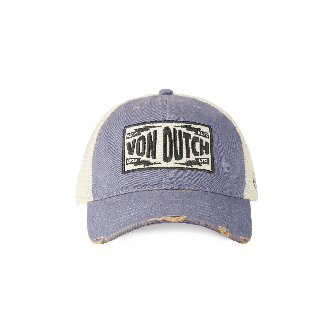 Casquette Von Dutch violette MAC Kultur : une pièce brute, entre denim usé et culture biker old-school.