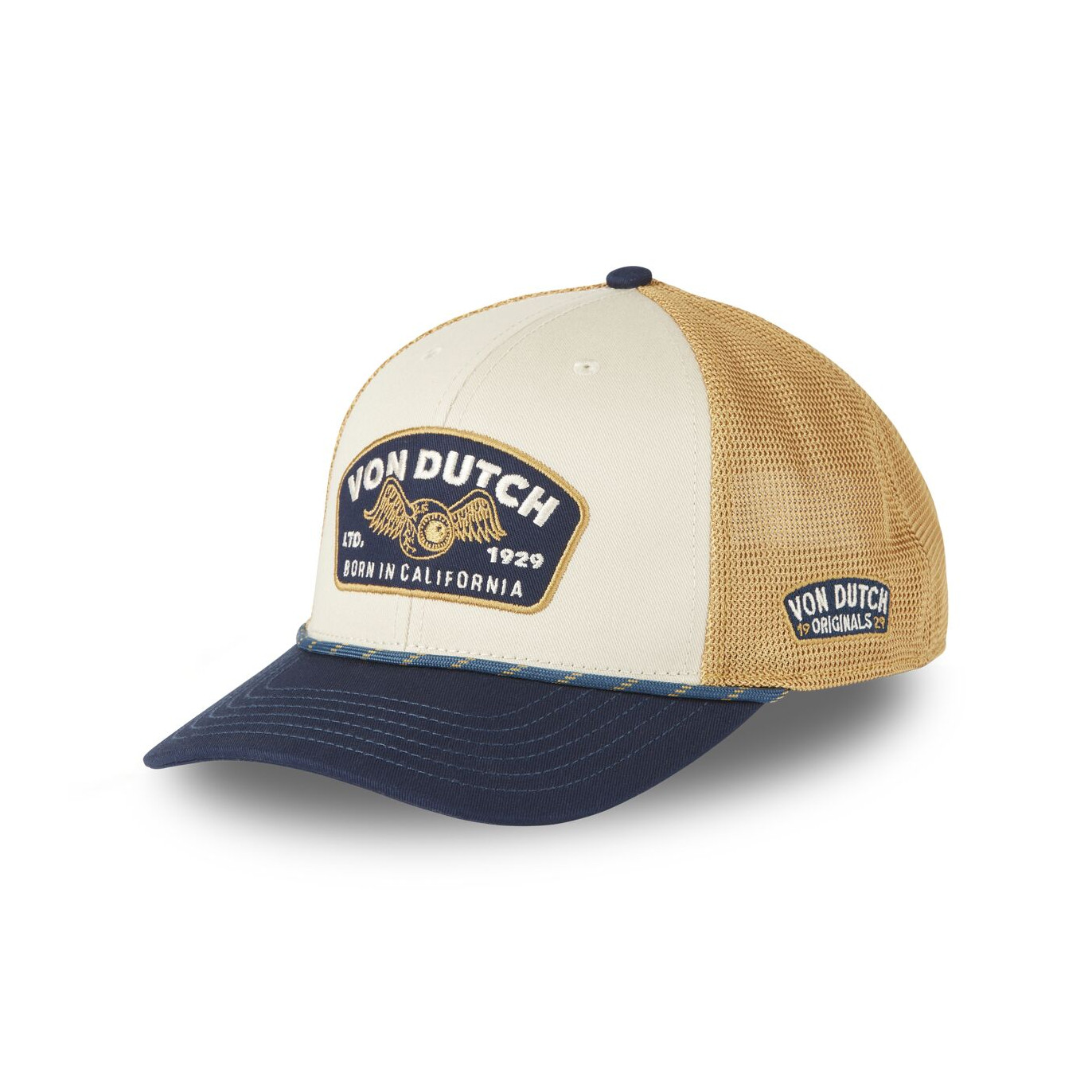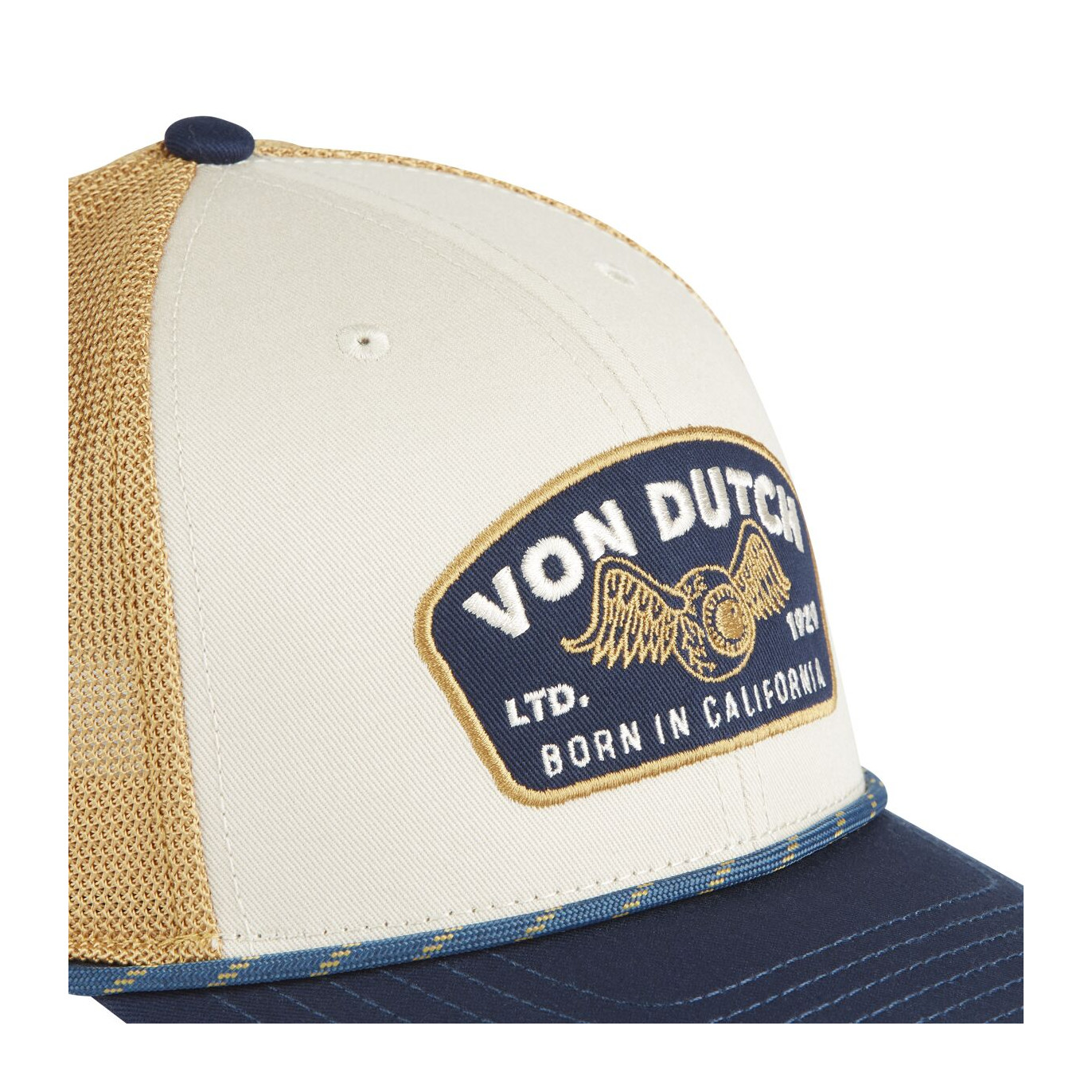 Casquette Von Dutch beige SEMI-CURVED : une silhouette clean, inspirée des routes US et du style biker des années 2000.