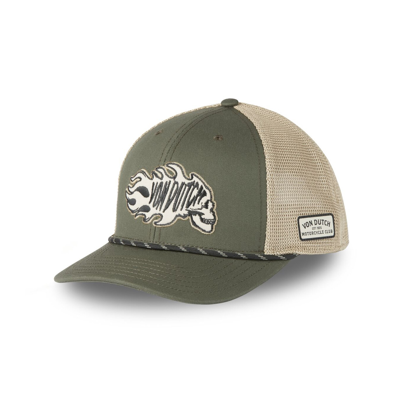 Casquette Von Dutch kaki SEMI-CURVED : une pièce brute, entre terrain US et esprit biker old-school.