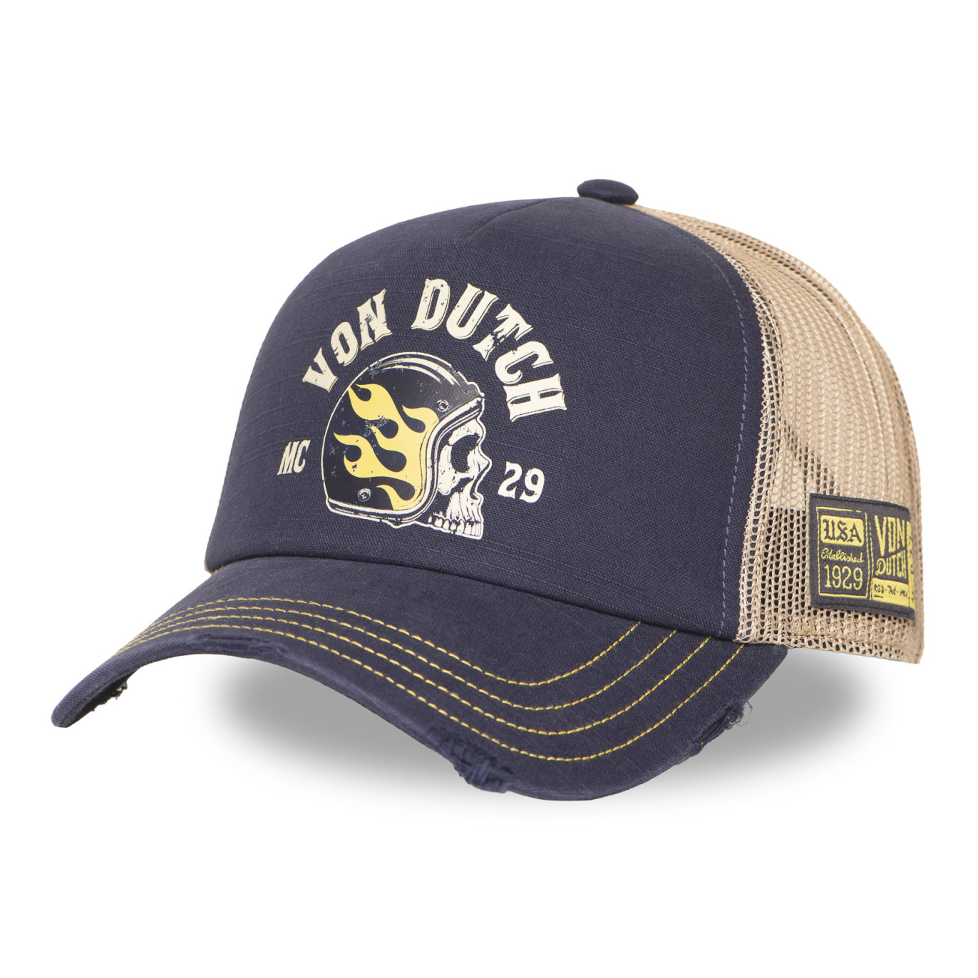 Casquette Von Dutch bleue CREW Helmet : une pièce marquée, inspirée des crews biker et des routes US.