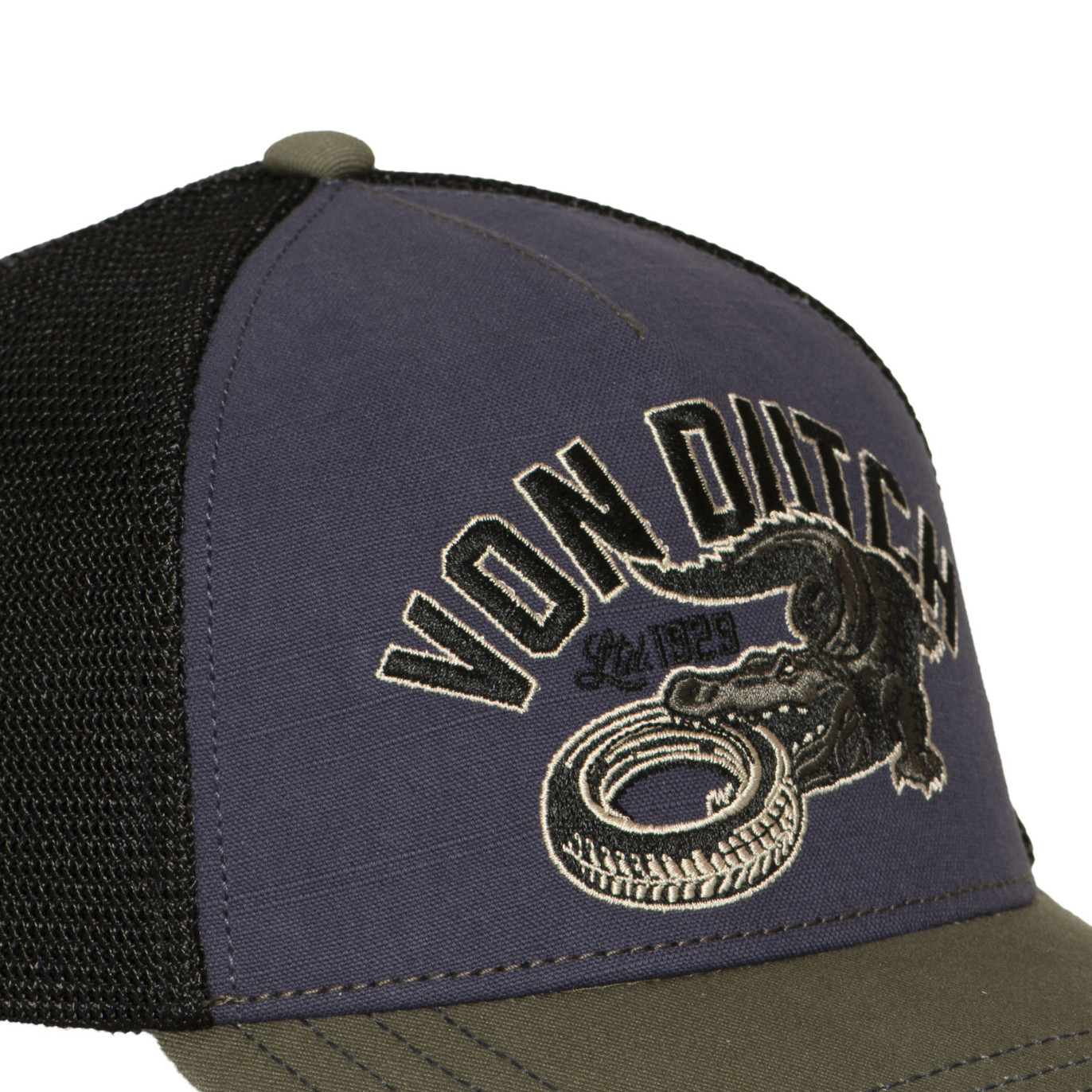 Casquette Von Dutch bleue WILD Croco : une pièce sauvage, entre bitume, custom culture et vibes biker 2000s.