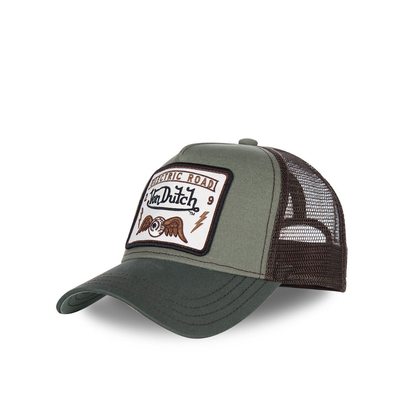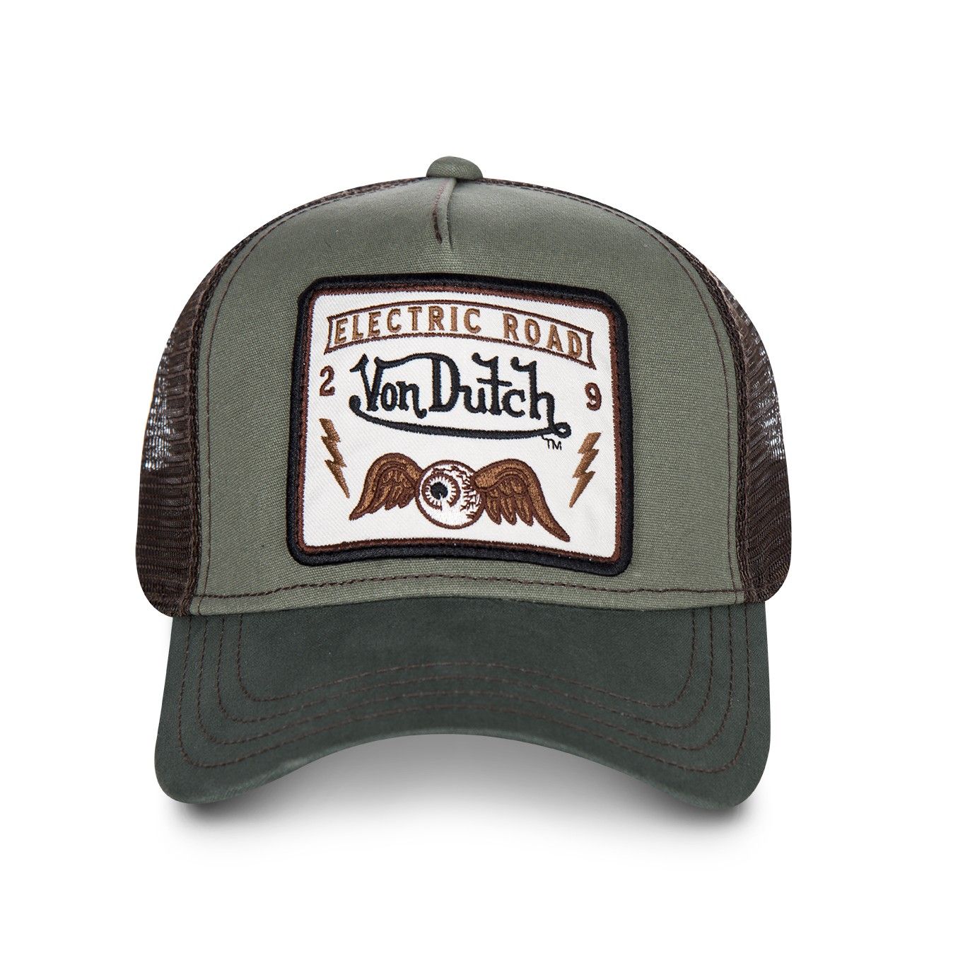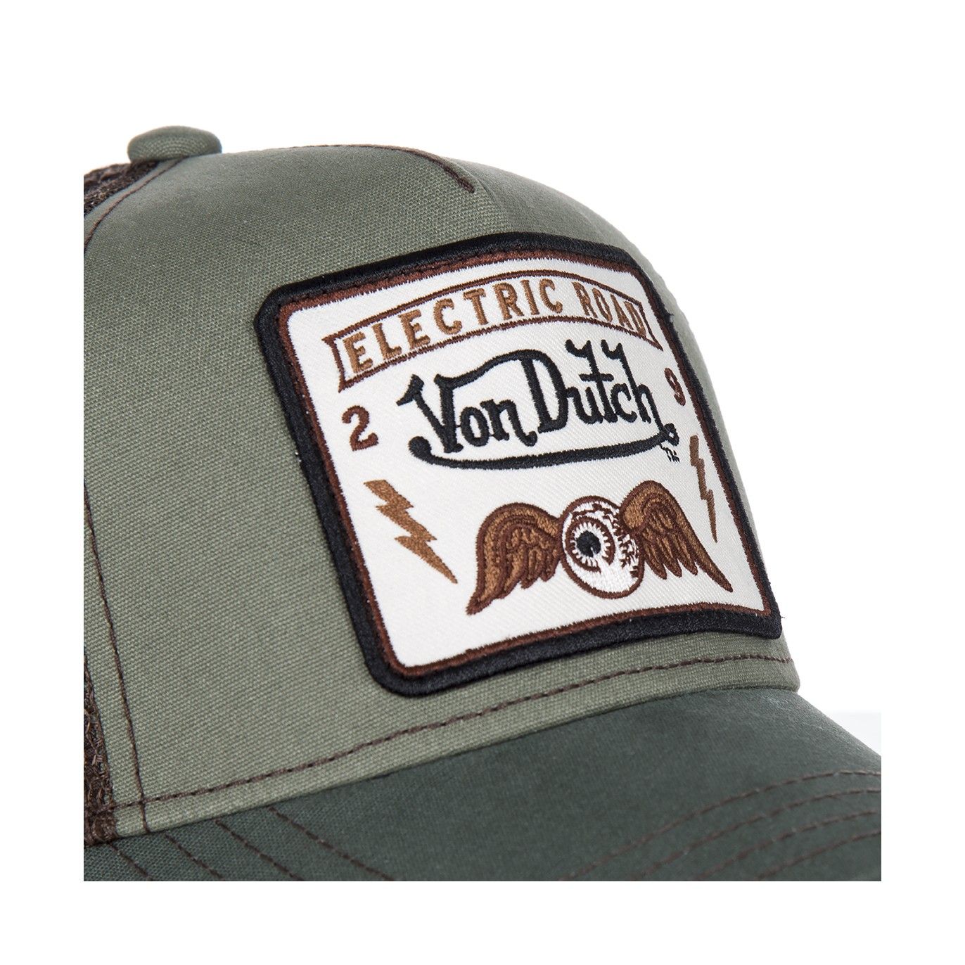 - Écusson Von Dutch "Flying Eye" marron et blanc sur l'avant