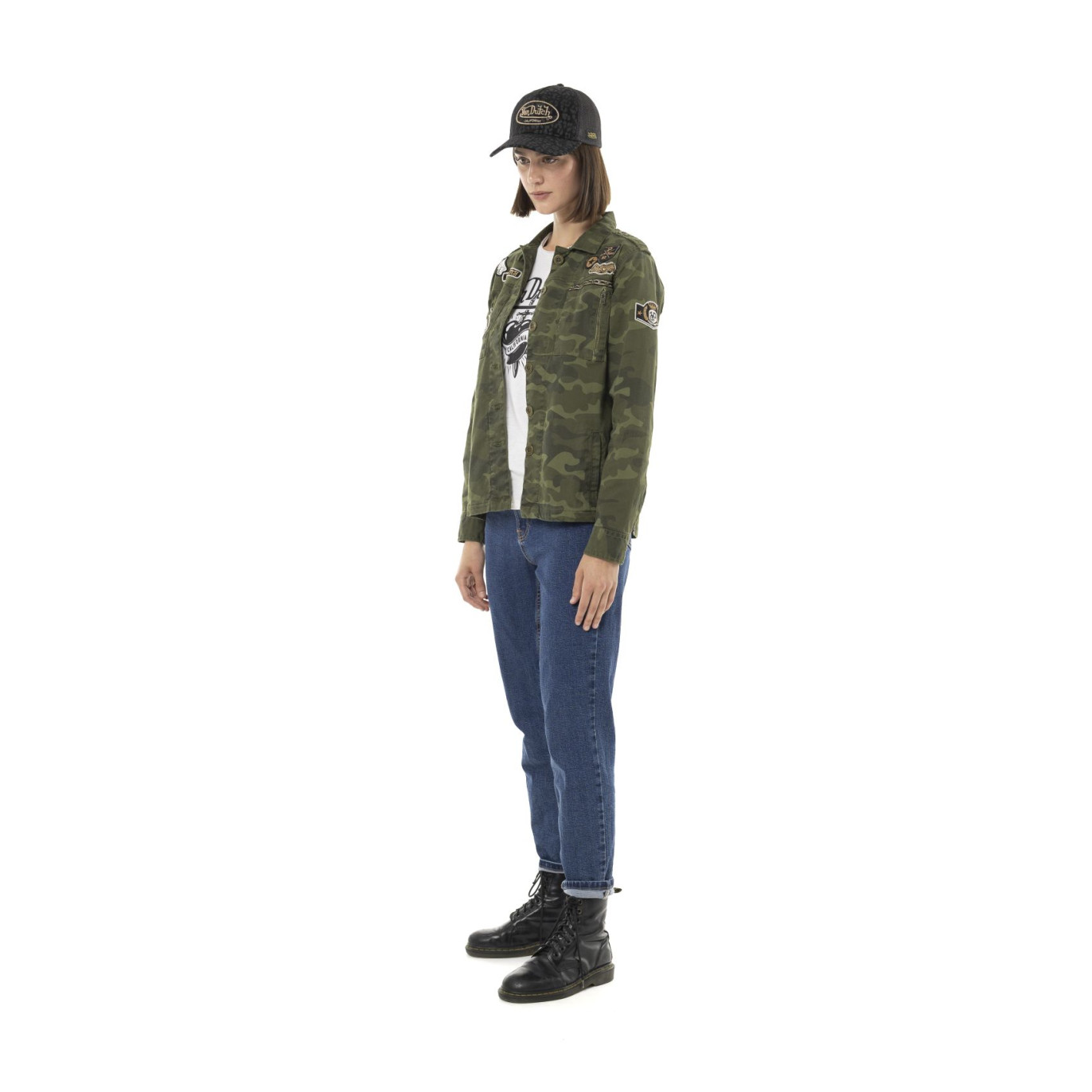 La veste militaire femme Vondutch Kamo impose un look biker vintage au féminin, brut et sans filtre. Son imprimé camouflage et ses patchs brodés rappellent les vestes de garage et les icônes rebelles des années 2000. En coton stretch, elle allie confort, résistance et liberté de mouvement, parfaite pour les aventurières au style affirmé. Sa coupe regular et ses poches pratiques ajoutent une touche fonctionnelle à ce must-have old-school. En kaki iconique, cette veste mi-saison respire la route, la poussière et l’attitude Vondutch — libre, audacieuse et fièrement rebelle.